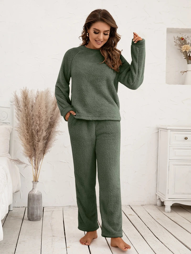 Stay warm and comfortable all winter long with the Calmora Women’s Flannel Pajama Set, designed for cozy nights and relaxing days at home. This solid-colored sleepwear set features a soft flannel crew neck long-sleeve top paired with matching long pants, offering full coverage and warmth for chilly seasons.